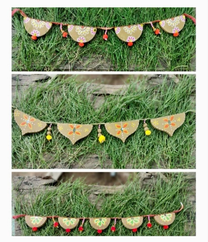 In villages, on special occasions like Teej, Diwali, or weddings, torans (torna) made of cow dung are hung as decoration on the doors of houses. These torans are traditionally made from cow dung, which is considered a symbol of purity and auspiciousness in Indian culture. Torans made from cow dung are not only a part of home decoration, but they also symbolize Indian culture, tradition and beliefs. Their decoration and construction method reflects the simplicity and beauty of rural life.